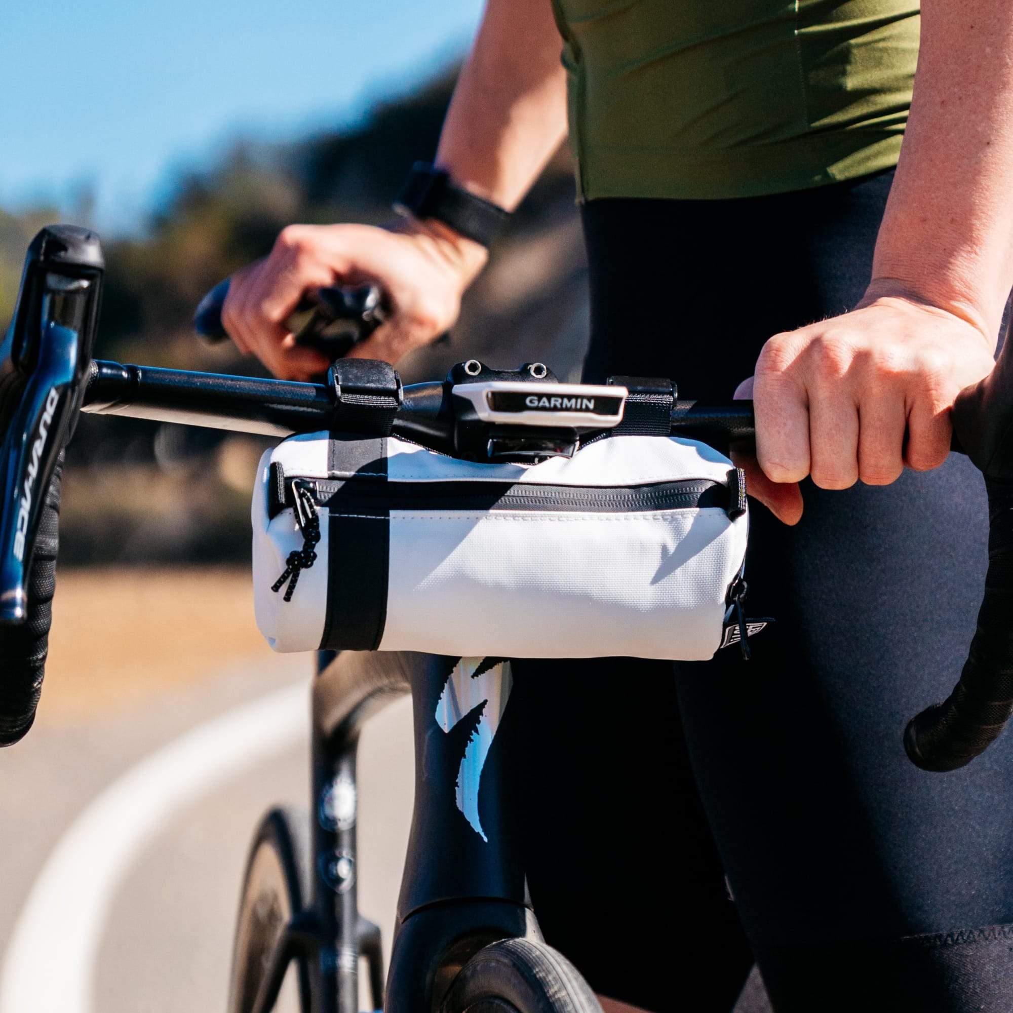 Mini Handlebar Bag rommer 1,3 L og er laget i et slitesterkt ytterstoff av 840D ballistisk nylon, med YKK Aquaguard-glidelåser, hurtigutløserspenner som monteres på sekunder, og en hard skallform som gir plass til lys og frontmontert sykkelcomputer. Innvendig holder en netting småting sortert, mens en retro reflekterende stripe synes godt i mørket.